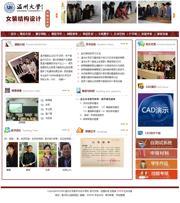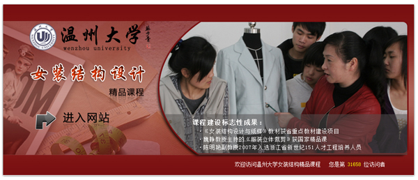 我公司為溫州大學服裝學院,建立的女裝結(jié)構(gòu)設(shè)計精品課程 經(jīng)溫州市教育局評審被評為溫州市高等學校市級精品課程網(wǎng)站。這也是我公司開創(chuàng)了第二個市級精品課程網(wǎng)。同時也慶祝公司在精品課程網(wǎng)站制作方面更上一個新的臺階,同時希望以后能夠為高等院校服務(wù),創(chuàng)立更好的網(wǎng)站。
